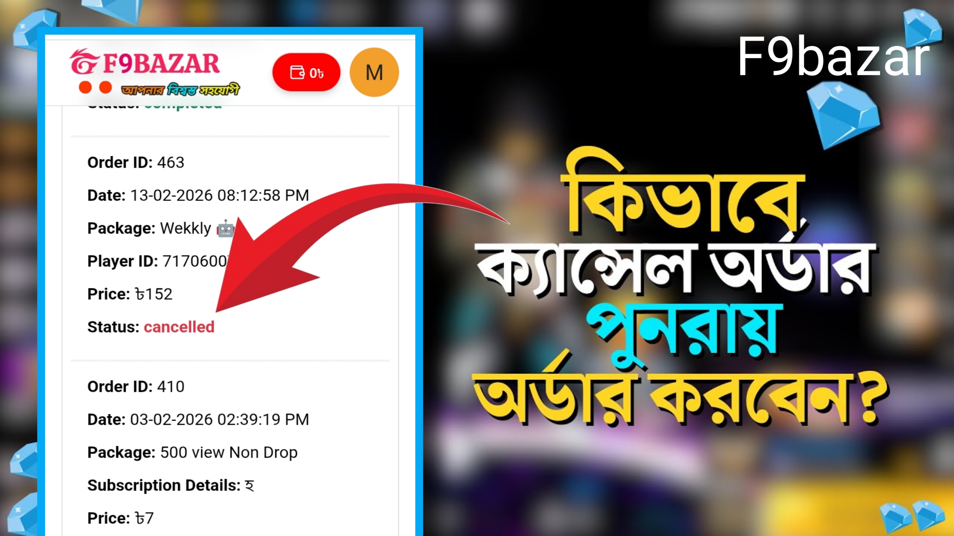 সু-খবর ! এখন থেকে দিন-রাত 24 ঘন্টা টপ-আপ করলে অটোমেটিক ডেলিভারি হয়ে যাবে। সঠিক আইডি কোডে অর্ডার করলে ৫ সেকেন্ডে ডেলিভারি! যেকোনো সমস্যায় আমাদের WhatsApp messages দেন 01648033684